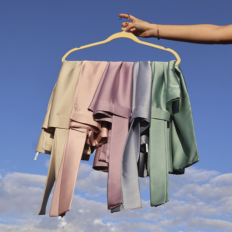 Nuestras sedas de calidad Maison C son 100% naturales, los estampados y teñidos con fibras 100% naturales y las terminaciones son con costura francesa.