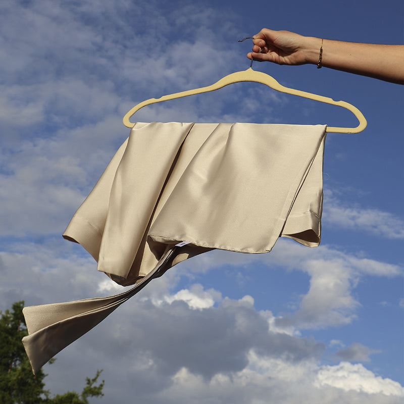 - mejora la penetración de tus productos de skincare (hidratación) dado que la seda es un material que no es absorbente (a diferencia del algodón)